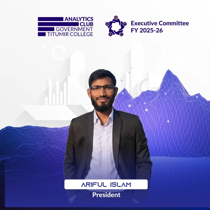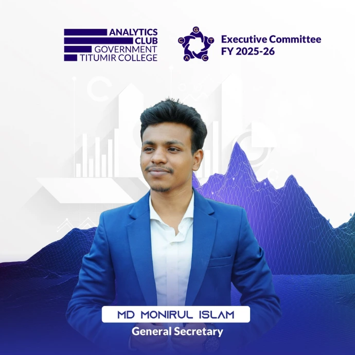 Welcome to the Govt. Titumir College Analytics Club. As your advisor, I believe this club offers a vital space to develop skills in data analysis. Beyond technical learning, we emphasize building a strong professional approach. Our activities encourage teamwork, responsible conduct, and effective communication – qualities essential for success in any professional environment. We aim to prepare you not just in analytics, but also in the way you work and interact. Join us to learn, grow, and cultivate the professionalism that will serve you well in your future careers.